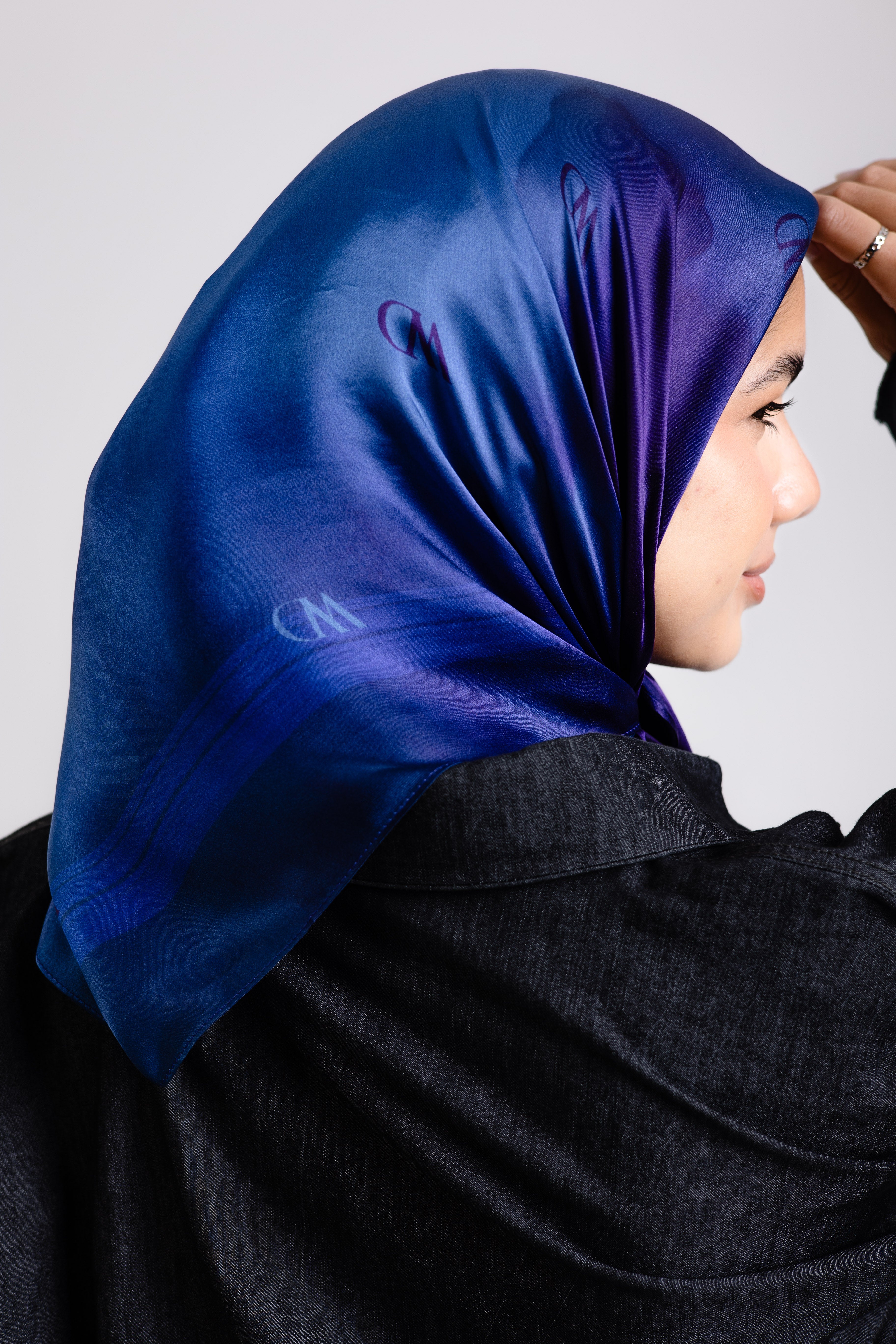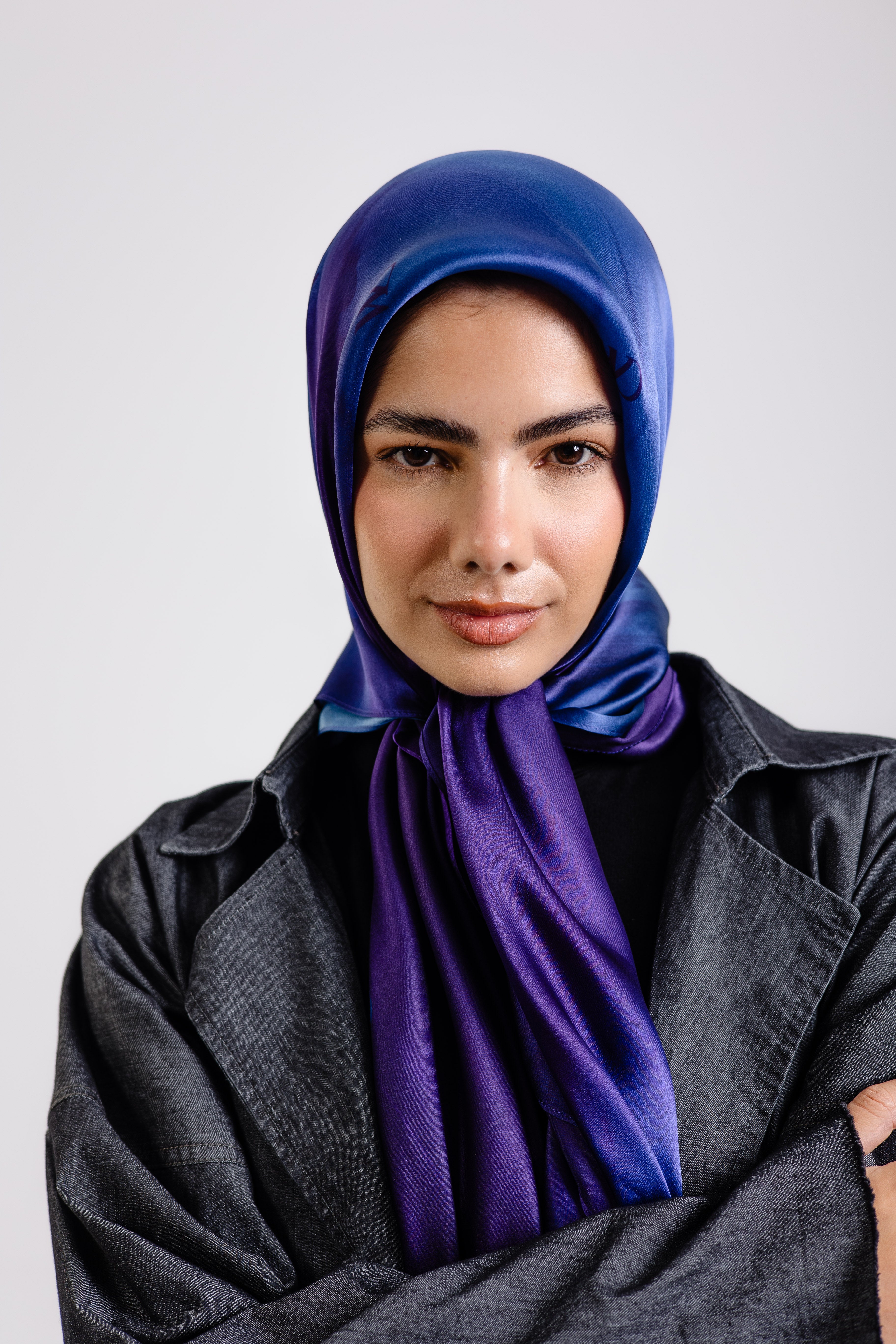 From Worood’s colorful silk scarf collection, the Square Beaux Blue Silk Scarf is a soft touch silk scarf in authentic silk fabric, capturing the calm beauty of violet and navy merging in an ombré of quiet strength.