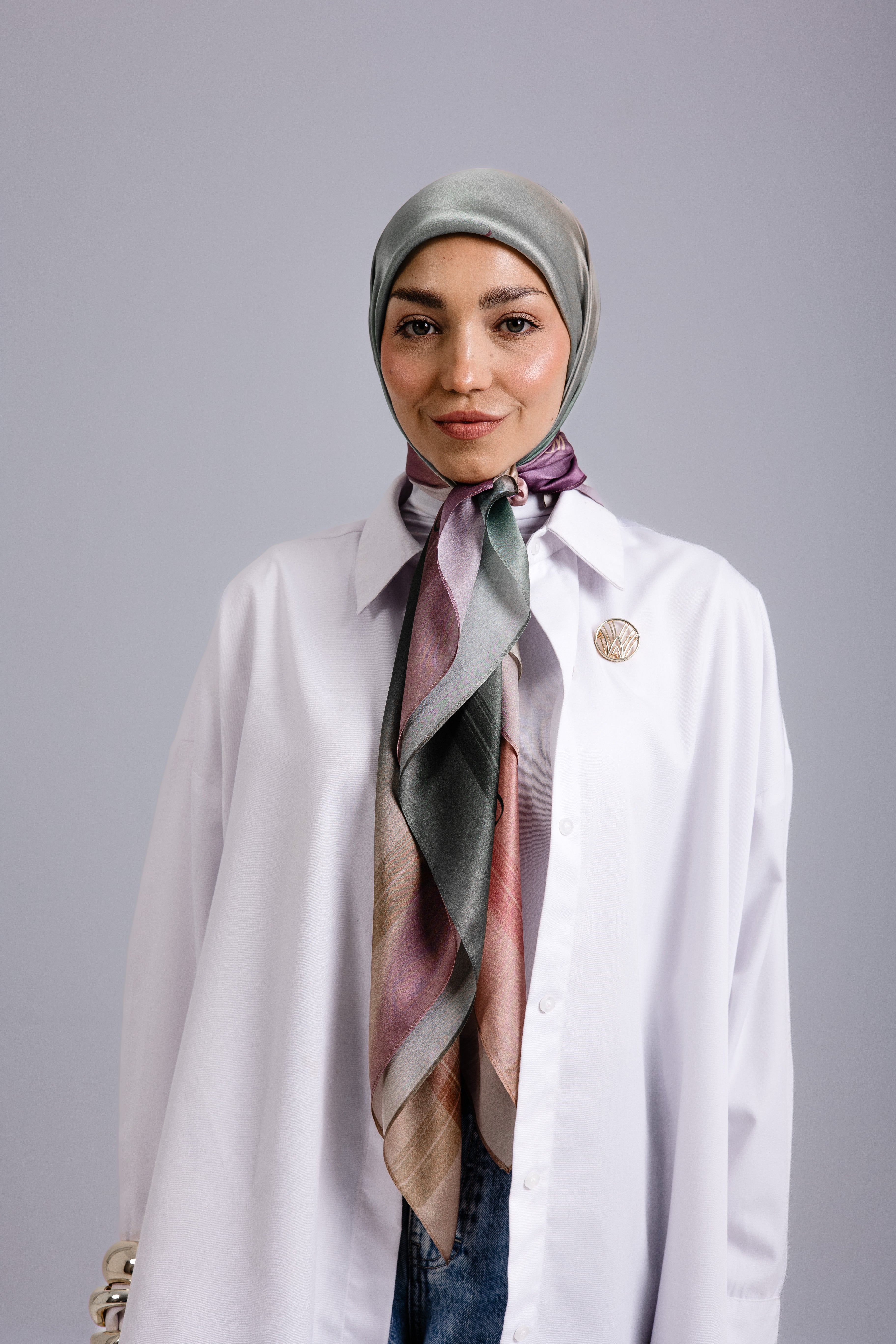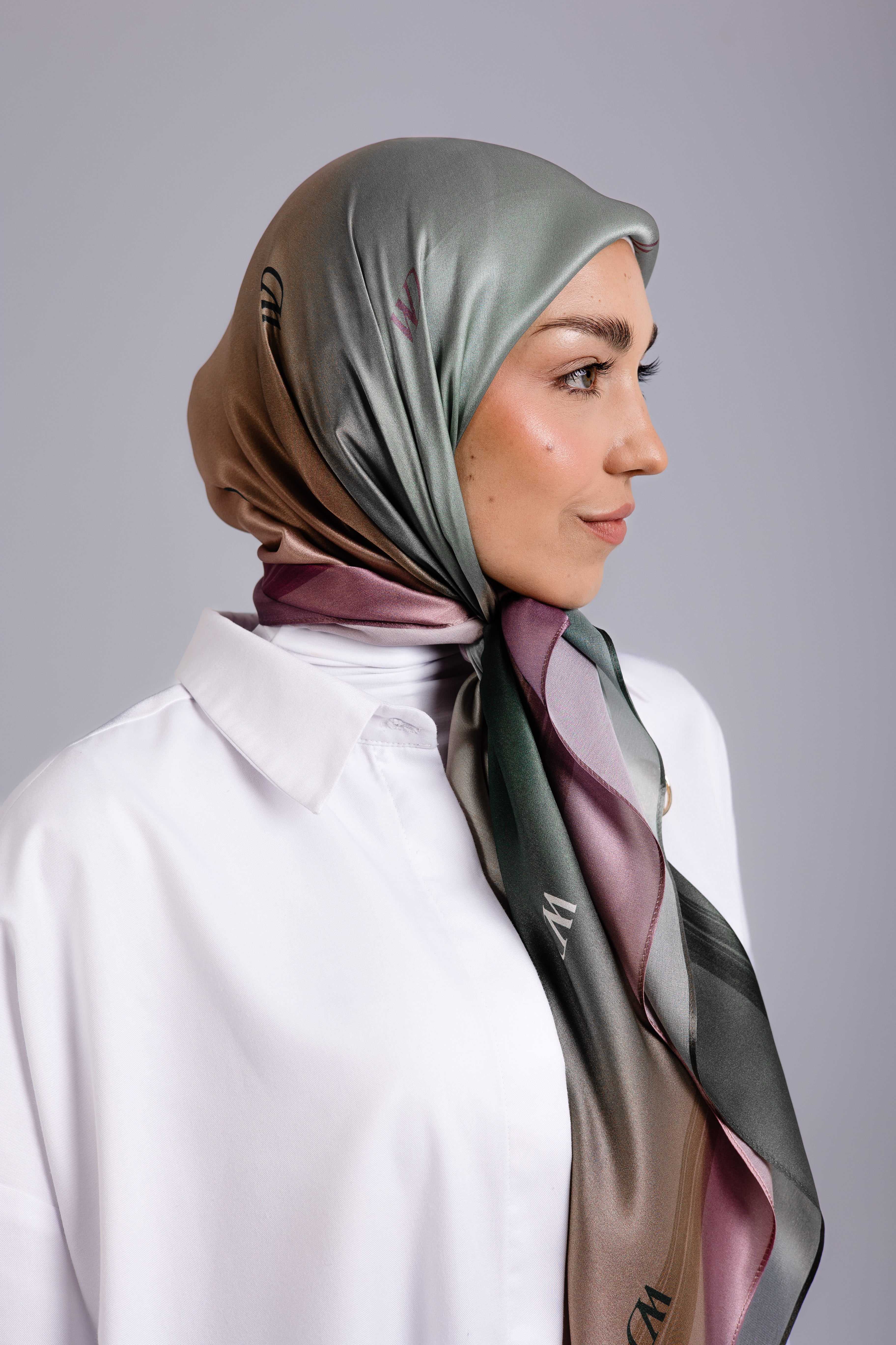 The Rosée Pastel Silk Square Scarf is a luxury silk scarf crafted from natural silk fabric, reflecting softness, freshness, and grace through its pink-to-green ombré design.