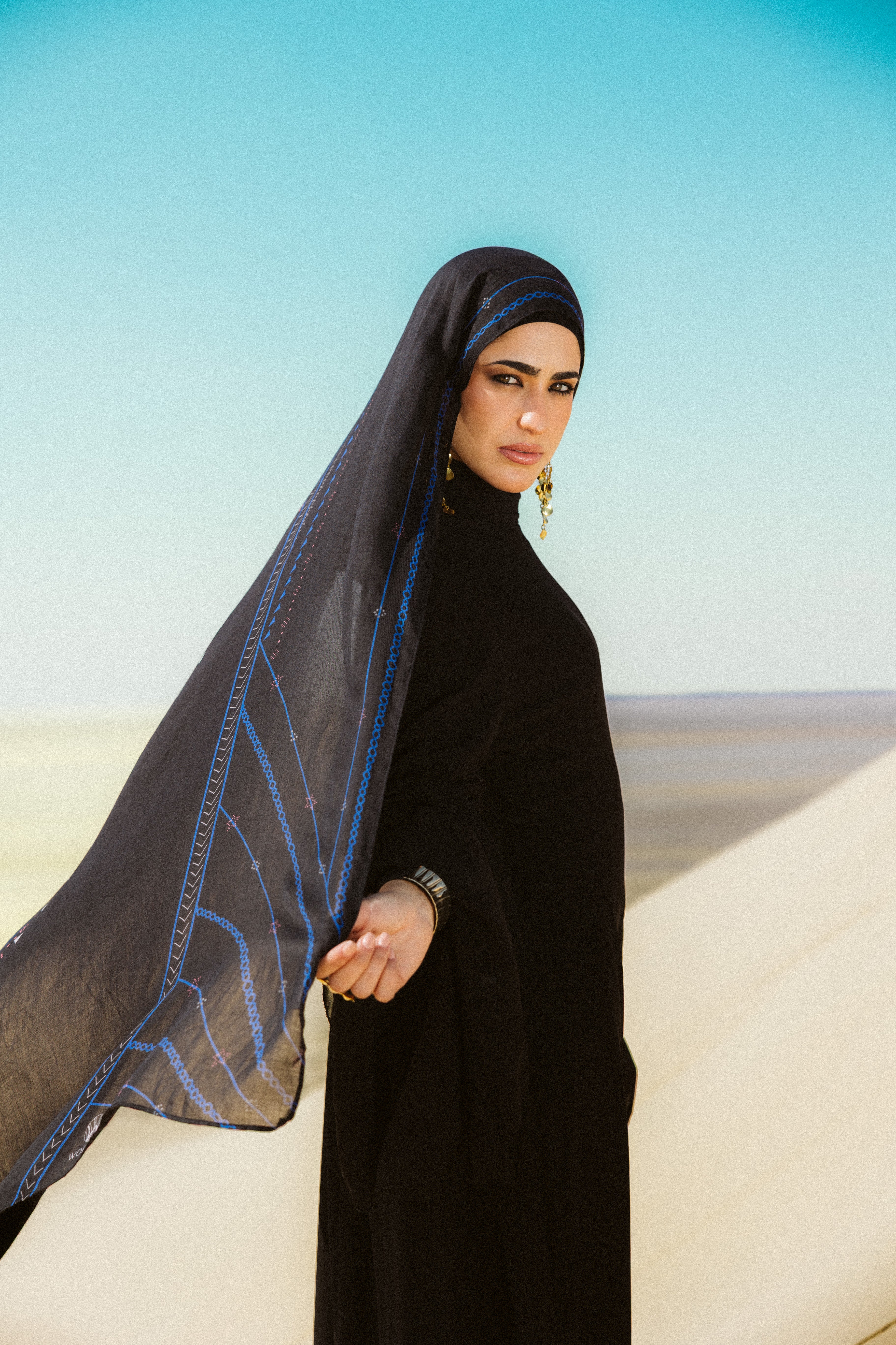 A modal scarf inspired by the meaning of Masar, a path shaped by journey and continuity.