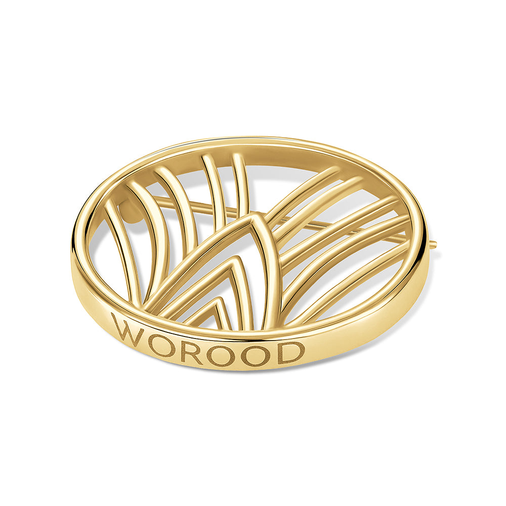 Inspired by the lotus-framed emblem of the WOROOD house, this brooch captures the quiet strength of purity and design. Each piece is handcrafted in 925 sterling silver, plated in 21-karat gold for enduring brilliance.